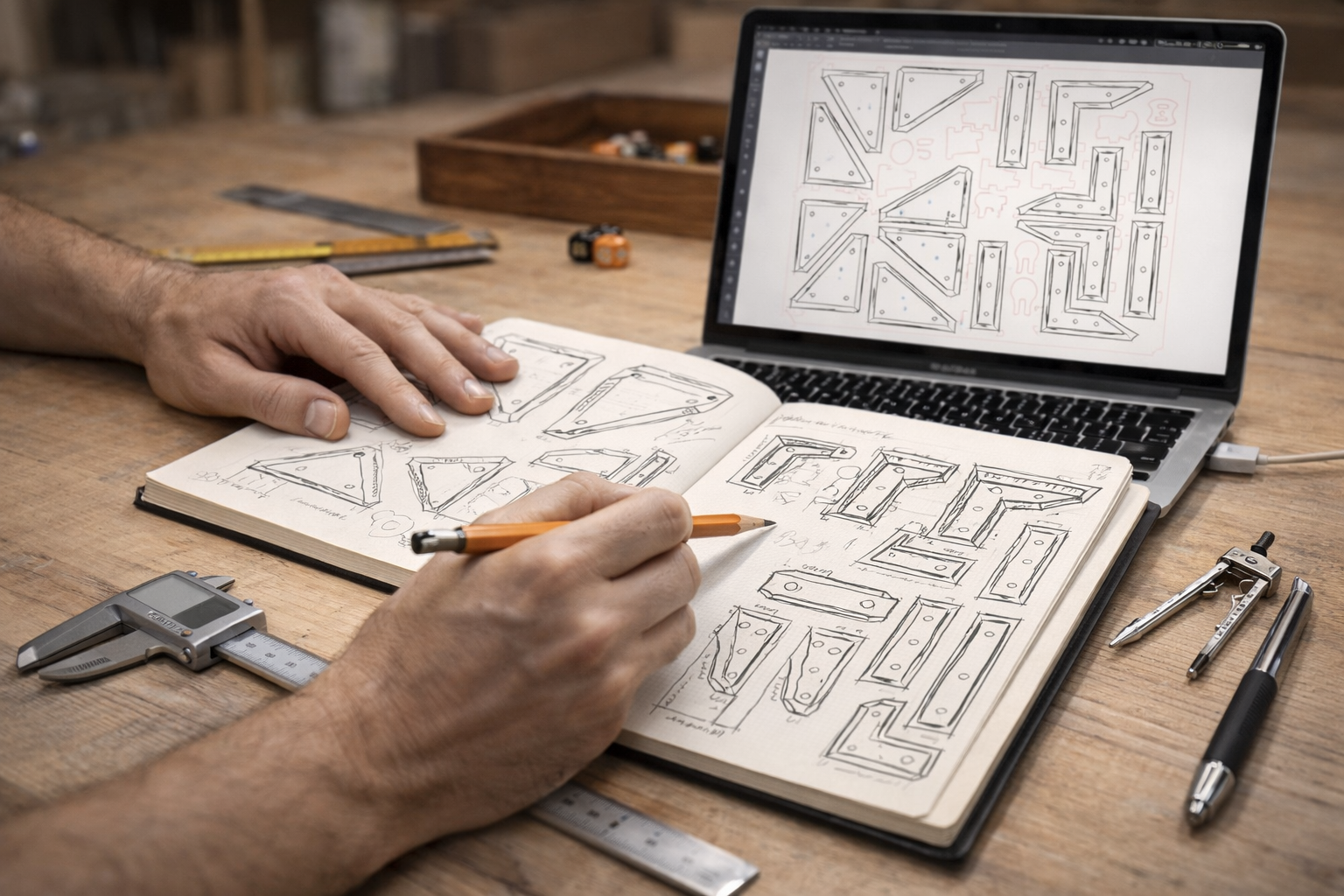 Chez Arcane Ludique, chaque pièce naît d’un dialogue entre réflexion, maîtrise technique et travail manuel.