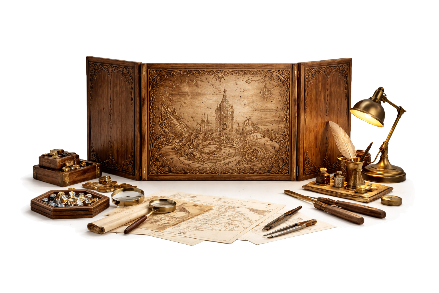 Le jeu de rôle nous accompagne depuis de nombreuses années. Ce qui n’était au départ qu’un loisir est devenu une passion durable, nourrie par les campagnes au long cours, les soirées partagées et le plaisir simple de manipuler de beaux objets au centre d’une histoire. Avec le temps, une évidence s’est imposée : trop d’accessoires standardisés, produits en série, impersonnels ; trop peu d’objets conçus avec soin, responsabilité et volonté de durer.